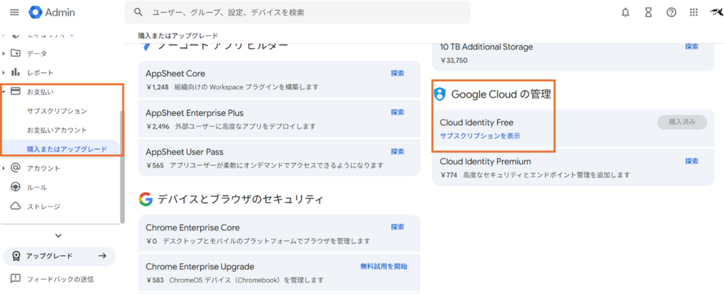 Cloud Identity Freeのアカウントでも、以下のツールは標準で利用可能です。