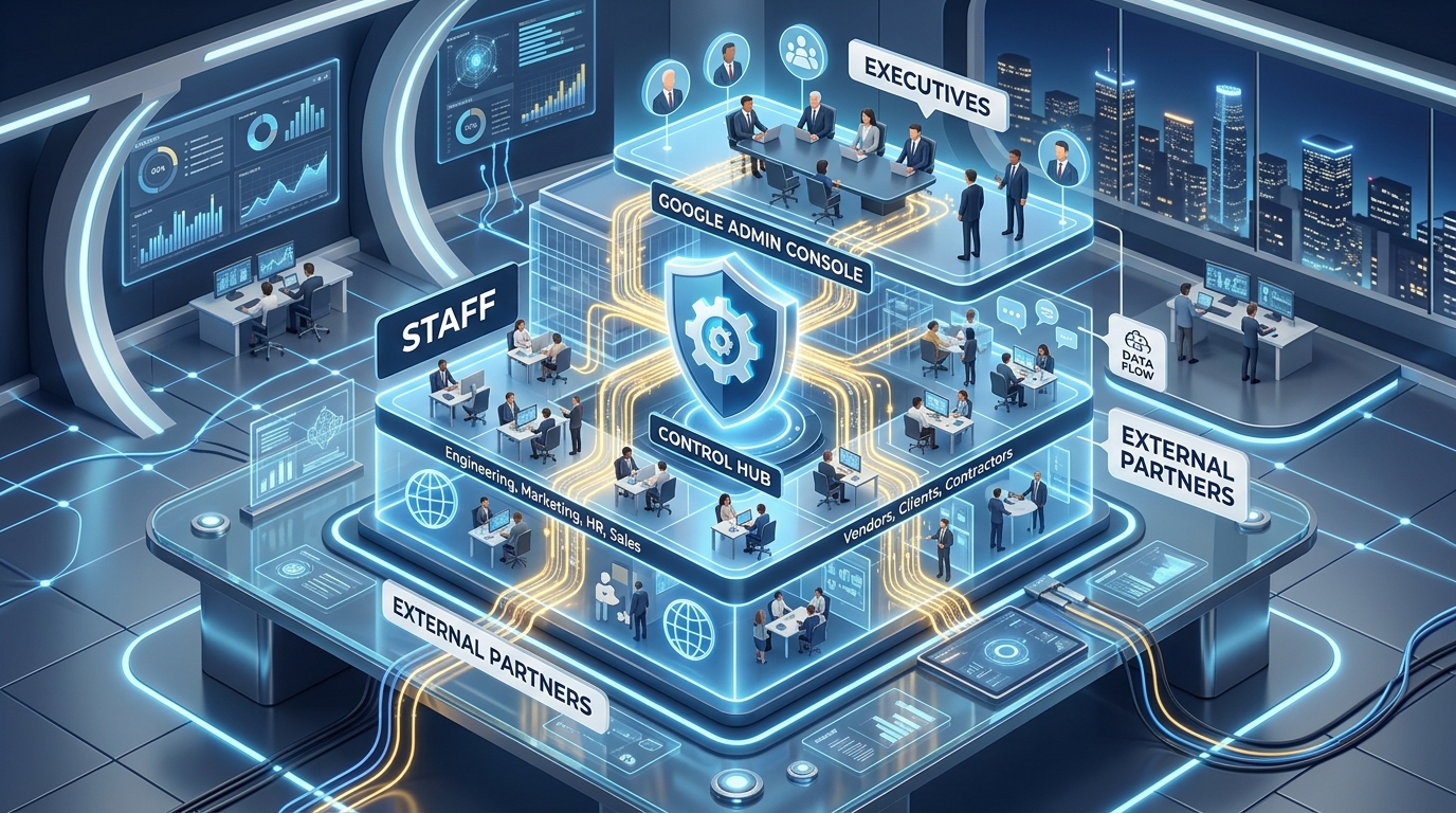 これだけで終わってしまう導入は、非常に惜しいと言わざるを得ません。Google Workspaceの管理コンソール(アドミン)は、単なるユーザーのリストではありません。それは、デジタル上に「自社の組織構造」を定義し、情報の流れをコントロールする、いわば「デジタル本社の司令塔」です。